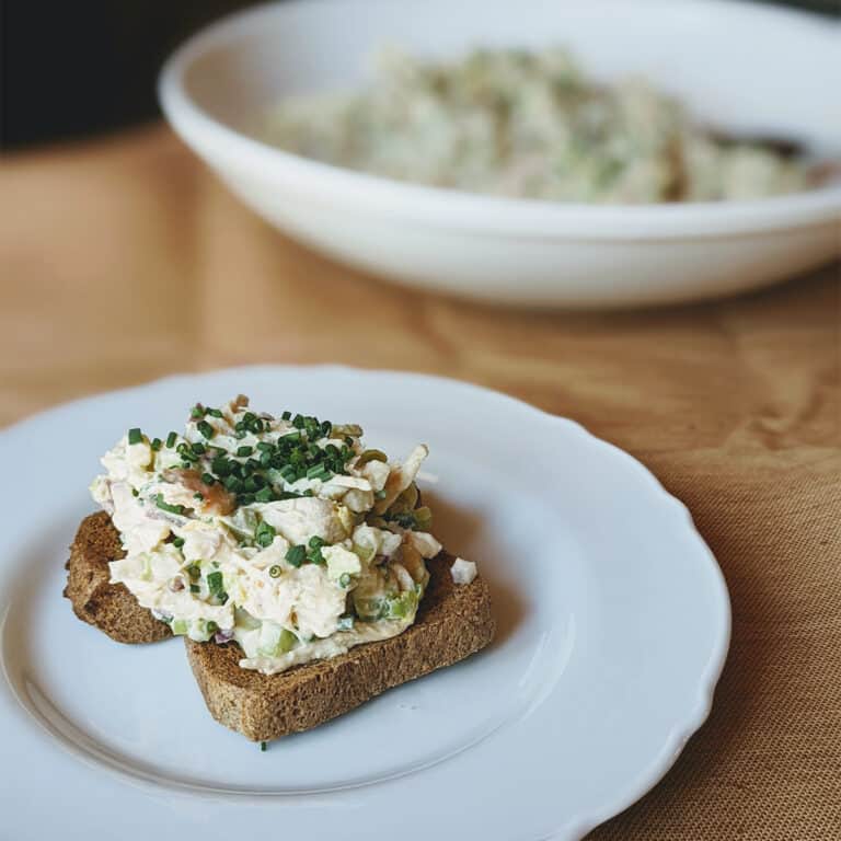 This Picnic Chicken Salad is made for warm-weather picnics or backyard barbeques. It’s easy to make ahead, easy to make into sandwiches, and versatile enough to bring along on a hike or stash in your picnic basket for tailgating.